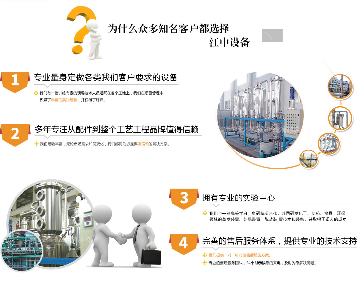 江陰市江中設(shè)備制造有限公司是一家專業(yè)從事蒸發(fā)、濃縮、提取、污水處理等設(shè)備的廠家。廣泛應(yīng)用于制藥、化工、食品、農(nóng)副產(chǎn)品深加 冶金、電子等多個(gè)領(lǐng)域。產(chǎn)品遍及全國三十余個(gè)省、市、區(qū),并遠(yuǎn)銷歐美及東南亞一些國家和地區(qū)。公司實(shí)力雄厚,匯聚了一批高層次、高素質(zhì) 的專業(yè)人才,一直致力于產(chǎn)品的開發(fā)、生產(chǎn)和管理,并十分注重科技創(chuàng)新,所生產(chǎn)的設(shè)備受到用戶的青睞。